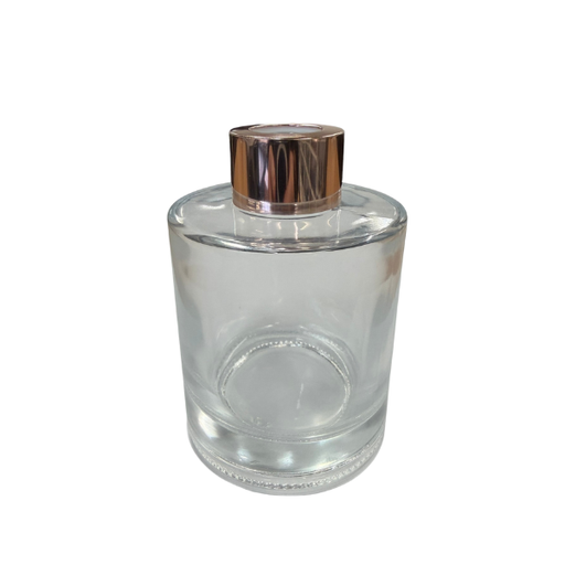 Glass Diffuser Bottle - 150ml - Round with Rose Gold Screw Cap Size: 9.5cmH x 6.6cmD