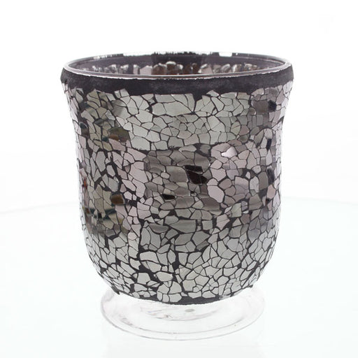 Candle SupplyMosaic - Silver Mirror Crackle - Charcoal Trim - Hurricane - Medium